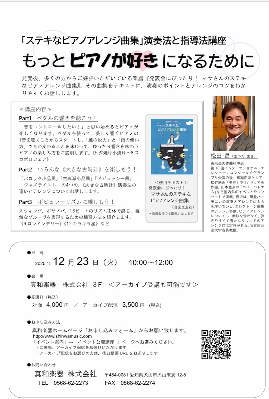 「マサさんのステキなピアノアレンジ曲集」演奏法と指導法講座